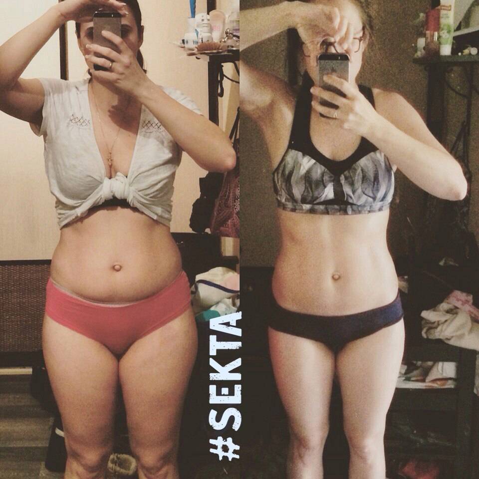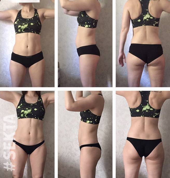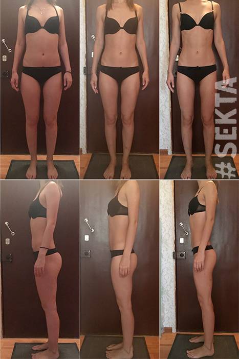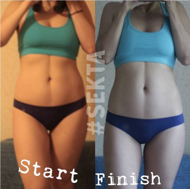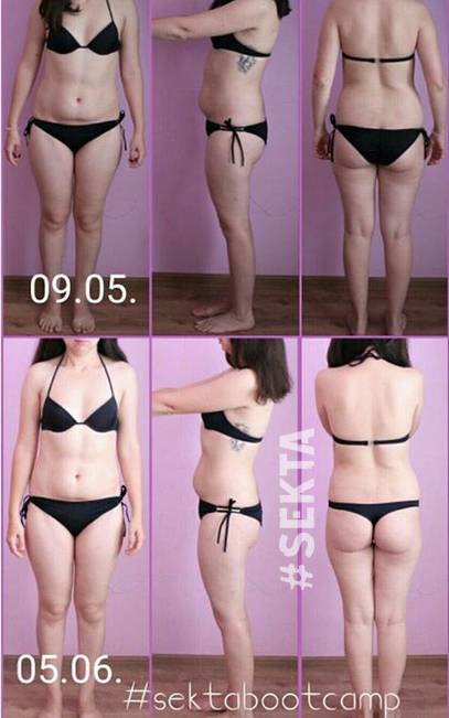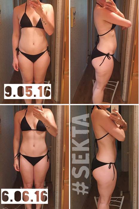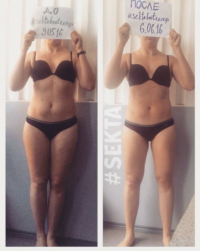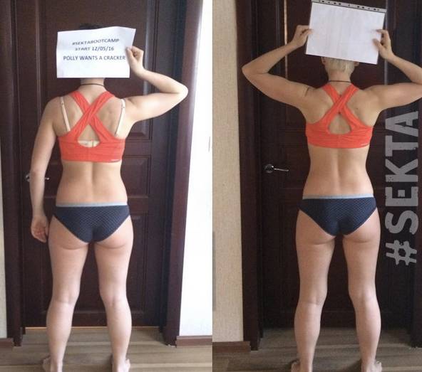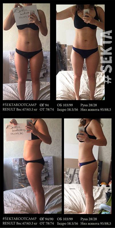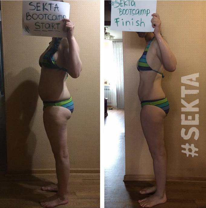 Финиш: 76-60-82, 45 кгНачалась моя история с просмотра хэштегов #sektabootcamp, результаты и процесс тренировок, которые выполняли участники очень вдохновлял, хотелось испытать на себе. И вот я на сайте секты в поисках инфы, записалась на первую неделю, и «о, ужас!», я записалась не туда, оказывается буткэмп больше не набирается. Расстроилась, хотела бросить это дело, но решила попробовать, неделя тренировок меня вдохновила и сожаление прошло, я решила, что с упорством добьюсь результатов и на простом дистансе. Мне понравилось заниматься, планировать свой день и рацион. Нооооо, не тут-то было, появилось объявление о буткэмпе, и я, не задумываясь, ринулась туда!