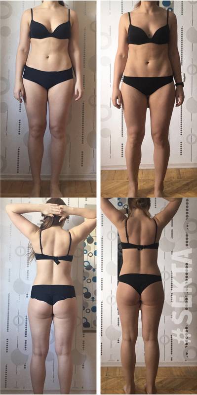 Когда я сделала фото «до», то даже прослезилась. Я знала, что результат будет, но никогда не думала, что он будет таким. Он лучше, чем после очки и дистанса. А сам курс дался легче именно морально. Мотивация к концу 4 недели начала немного падать, потому что чувствуется сильная усталость организма. Побегав целый день и выполнив все ворки, ночью я не могла уснуть, а это уже признаки перетрена. Поэтому формат 4 недели — это просто идеально. И очень круто, что на 4 неделе Миша Лавриков придумал новую движуху с bootcitycamp. Она появилось именно тогда, когда было нужно, и силы были на исходе. Как глоток свежего воздуха. Тренить вместе — это очень и очень здорово. Именно за это я любила очные занятие + чат, в котором всегда поддержат.