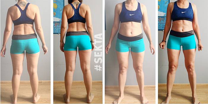 Это был первый проект #Sekta, когда мы сделали акцент на внешних изменениях и рельефе, а в работе с питанием участники получали только фокус на неделю, а все остальное время посвящали тренировочной программе.